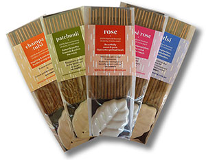 14 100% natural incense sticks with a glazed ceramic leaf incense holder.